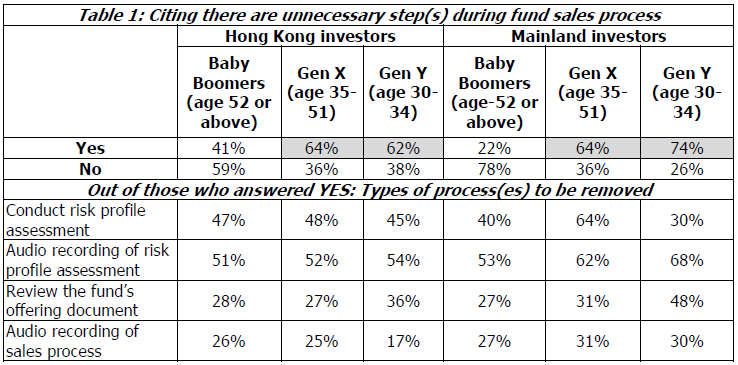 同样,54%的内地投资者认为可以取消某些步骤,大多数人认为风险评估的录音是多余的。